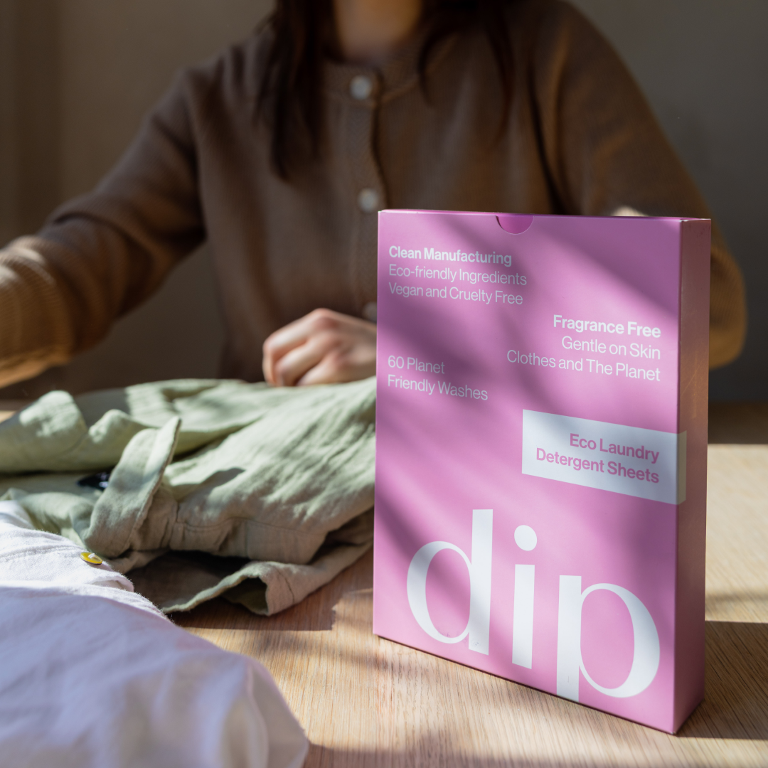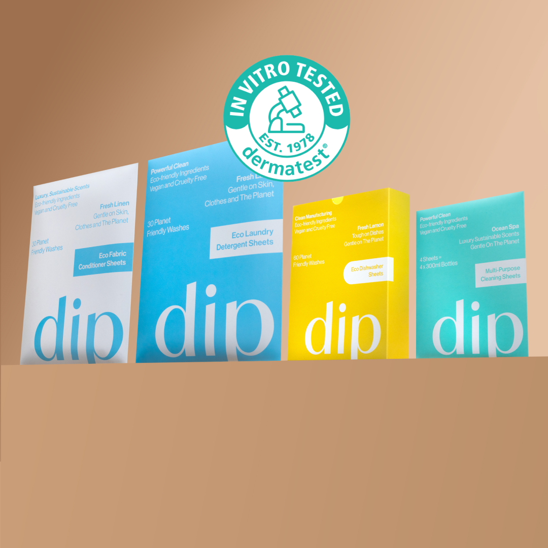 Each product is designed to replace multiple conventional cleaners so you need fewer bottles, less cupboard space, and zero compromise on results. The laundry sheets are a 3-in-1 detergent, stain remover, and fabric softener. The multipurpose sheets dissolve into one spray that works on every surface in your home, from glass to granite. Even the dishwasher sheets double up for both cycles and handwashing. With Dip, you don’t need a cupboard full of chemicals, just a few powerful, plant-based essentials that do it all.