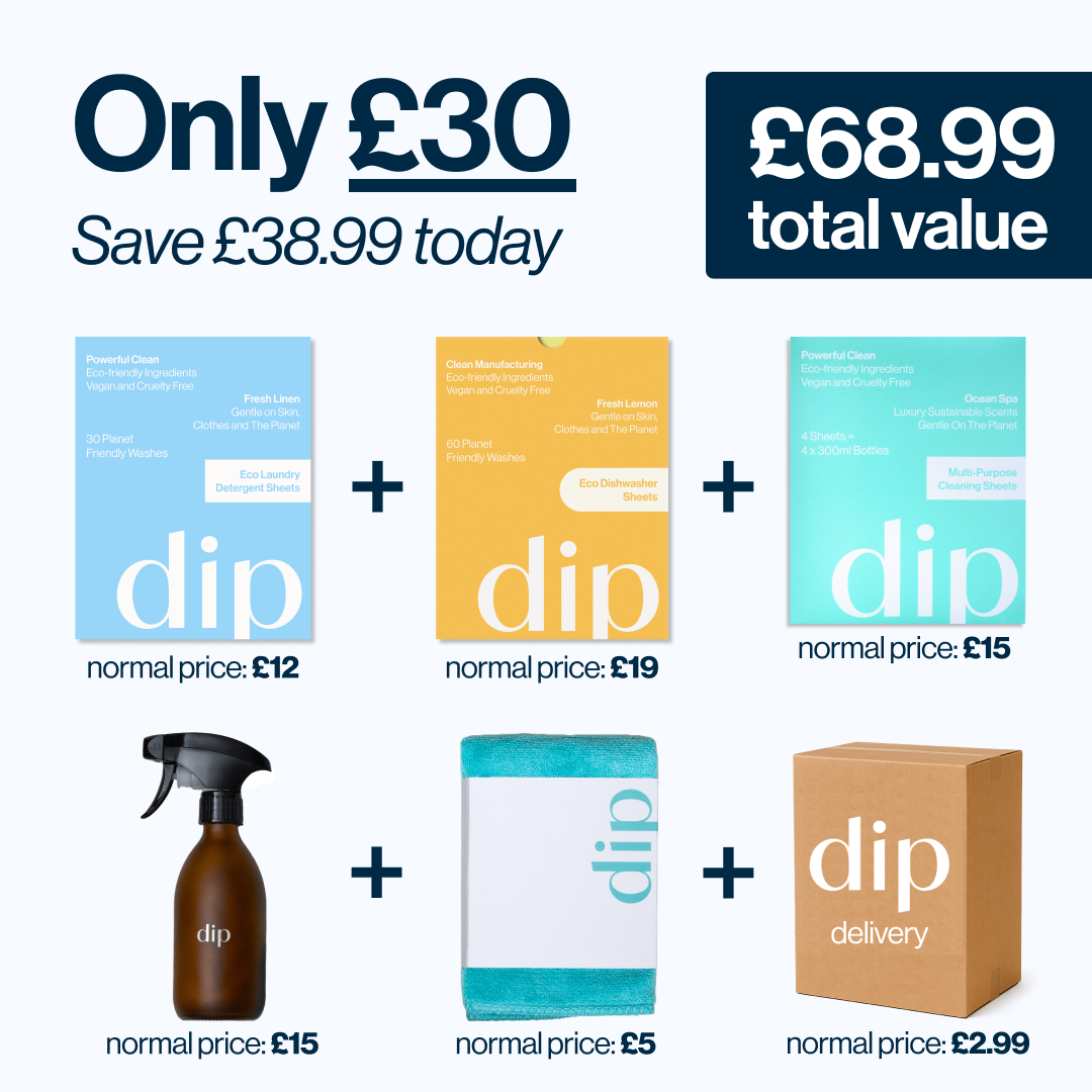 Unlike bulky, plastic-packed liquids and pods, Dip Laundry Detergent Sheets are powered by plant-derived, eco ingredients in a paper-thin format. They deliver a powerful clean without the toxins or plastic, so you never have to sacrifice performance for your health or the planet.