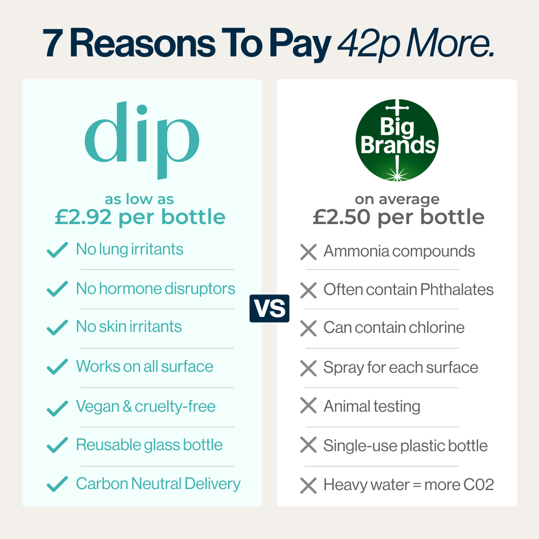 Dip is designed to eliminate harsh chemicals found in traditional cleaning sprays while delivering the same powerful clean.